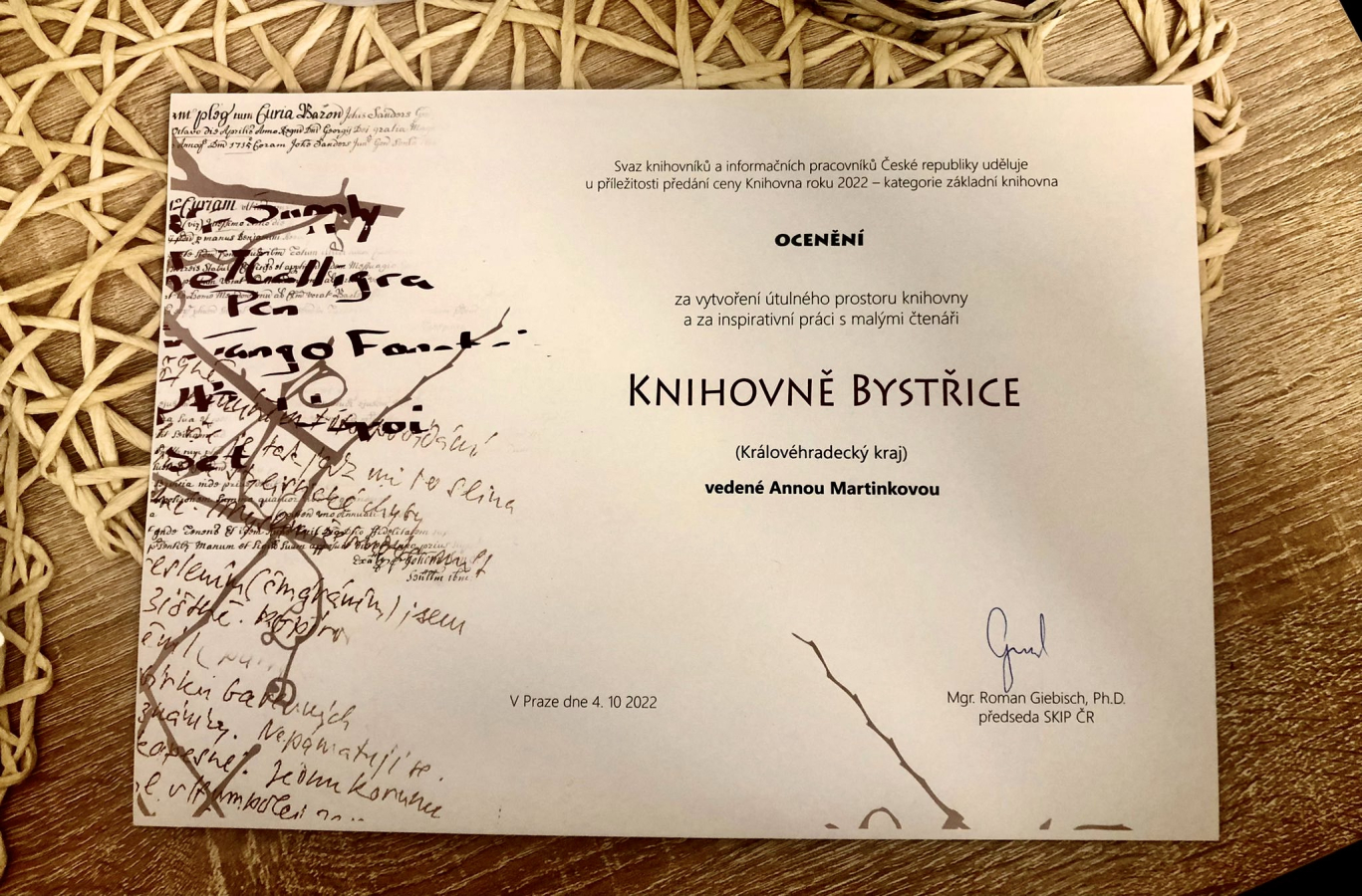 Titul Knihovnice/Knihovník roku uděluje od roku 2009 Studijní a vědecká knihovna v Hradci Králové spolu s regionálním výborem SKIP 08 Východní Čechy za mimořádně dlouhé působení v knihovnictví a za příkladnou práci v kategorii knihovnice malé veřejné knihovny.
